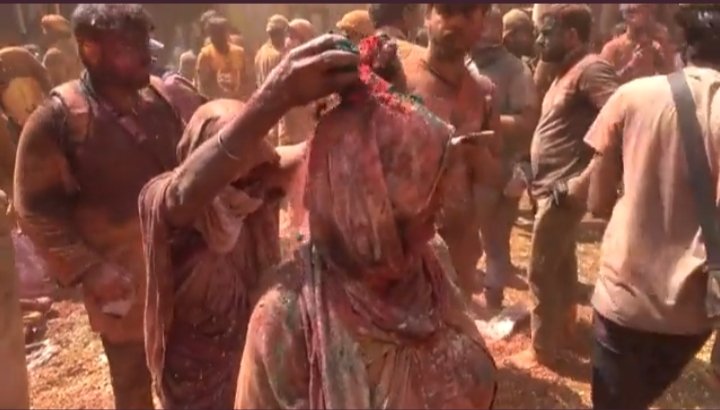 इसमें पुरुष महिलाओं पर रंग डालते हैं और महिलाएँ उन्हें लाठियों तथा कपड़े के बनाए गए कोड़ों से मारती हैं।